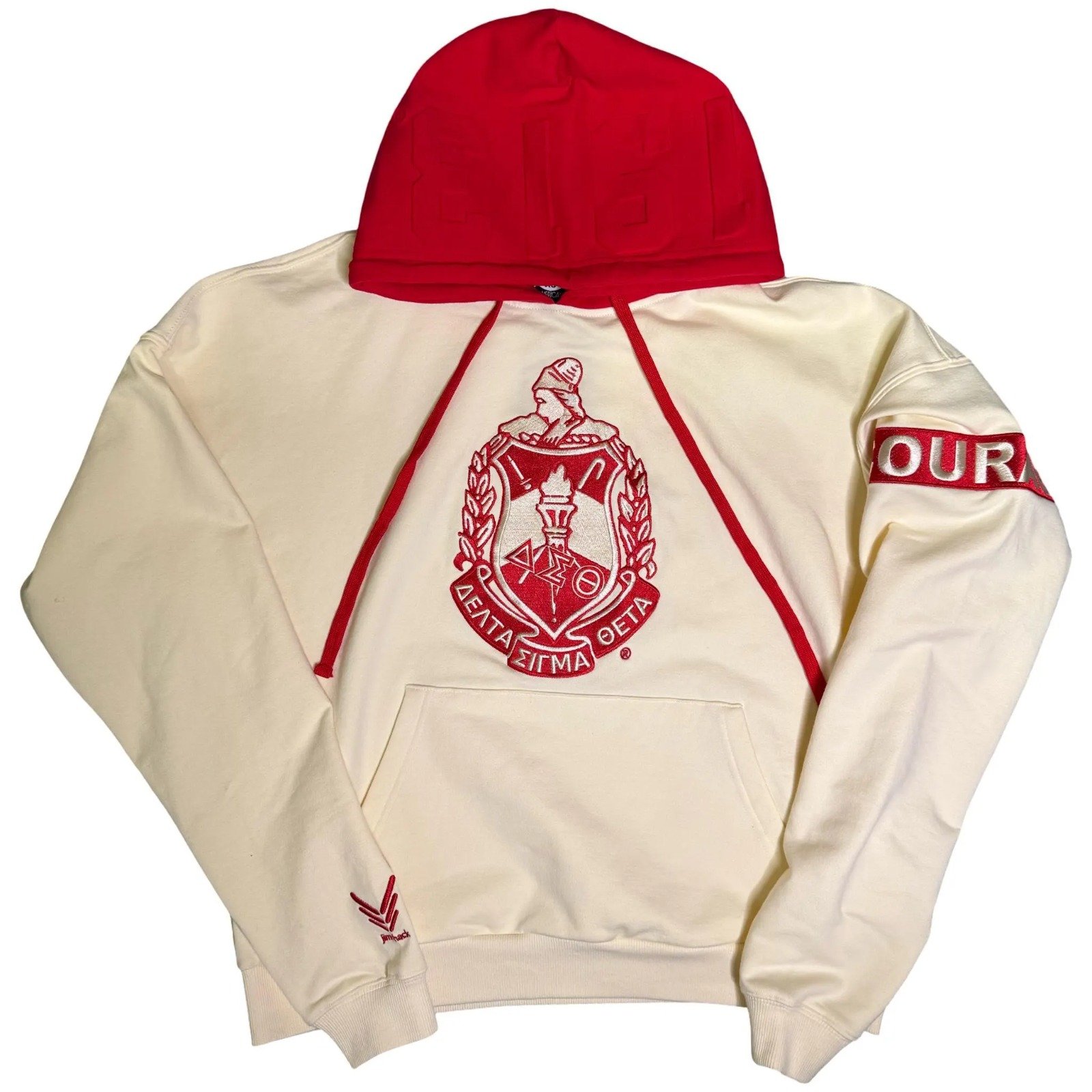 Front Detail: The left side features the Delta Sigma Theta Sorority Inc. logo with “1913” engraved, while the right side showcases large, bold Greek letters ($\Delta\Sigma\Theta$).